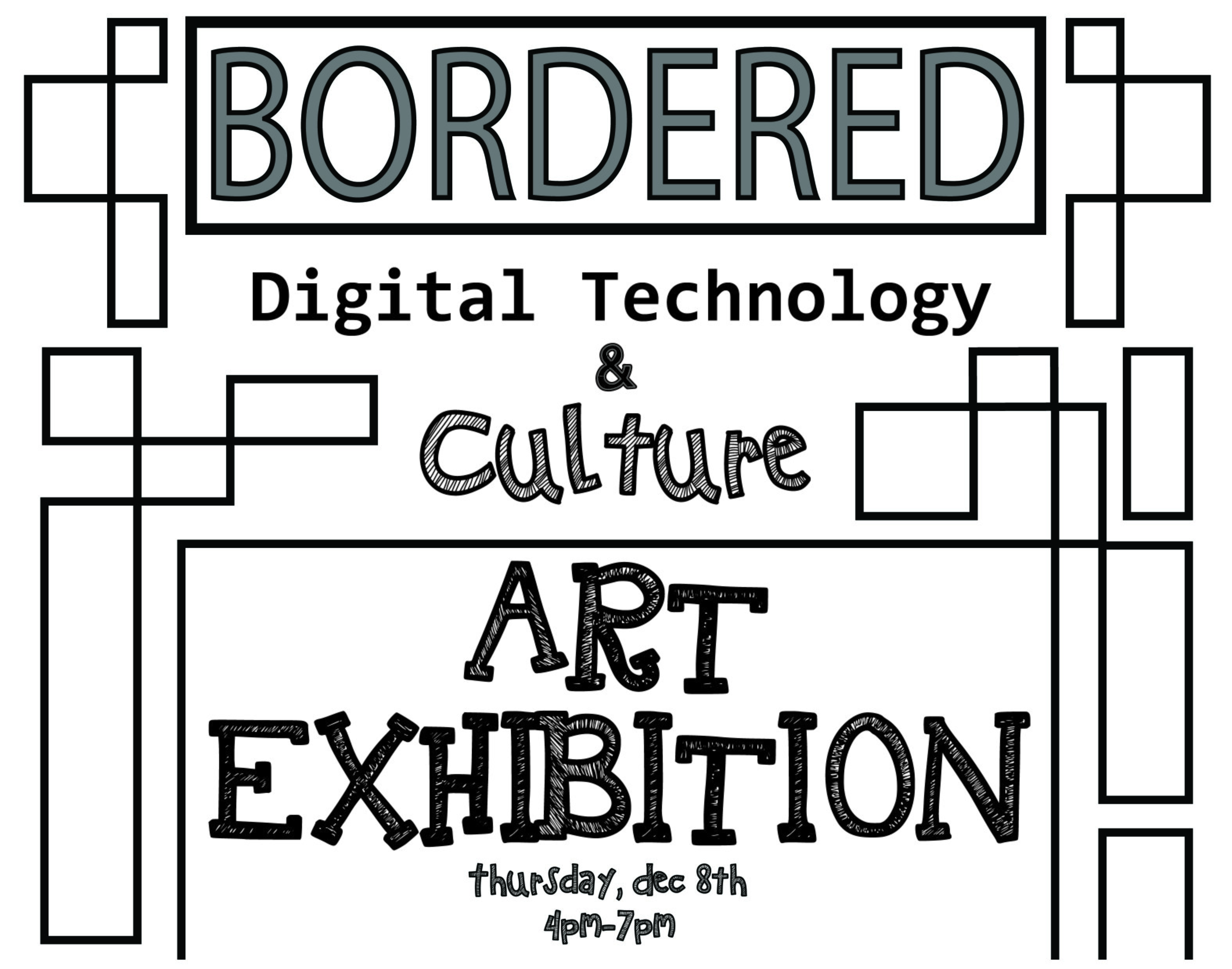 The “Bordered” group exhibition was curated by Peter Christenson, Assistant Professor of Fine Arts, and showcases 12 multimodal projects developed by students during his fall Digital Technology & Culture course “Advanced Multimedia Authoring.”