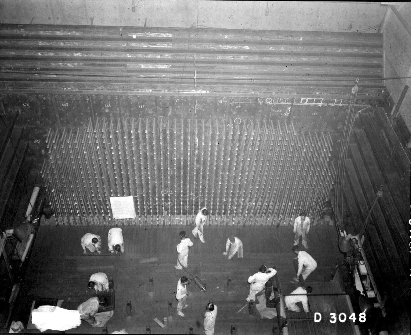 Front Face of B-Reactor with Men Working...
